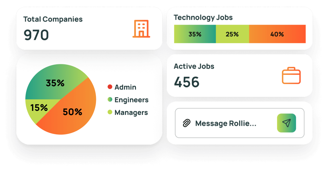 Rollie uses AI to automatically collect, organize, and deliver live job market data helping you understand hiring trends, spot growth opportunities, and strengthen your region’s workforce strategy.